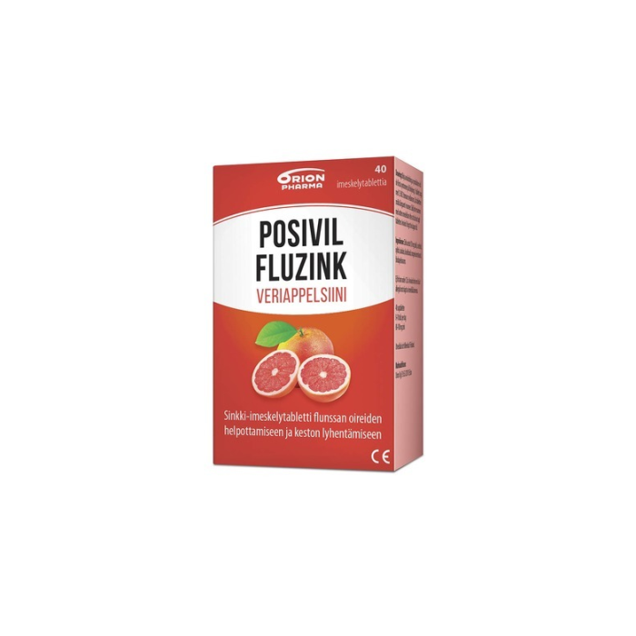 Posivil FluZink sitruuna-lakritsi, anis, veriappelsiini ja mustaherukka -imeskelytabletit ovat imeskeltäviä sinkkiasetaattitabletteja. Ne sopivat flunssan ensioireiden hoitoon ja ohjeen mukaan käytettyinä lyhentävät flunssaoireiden kestoa.